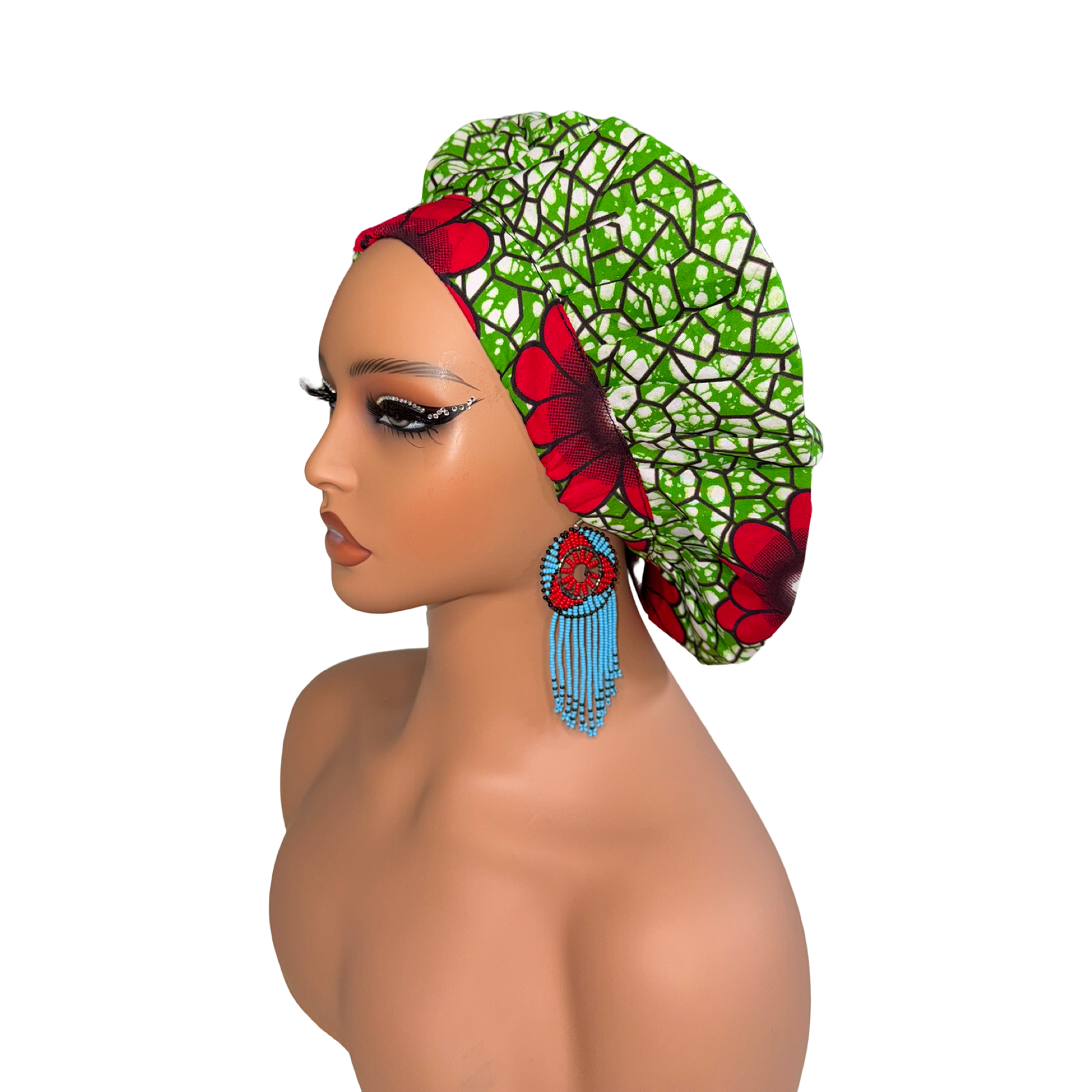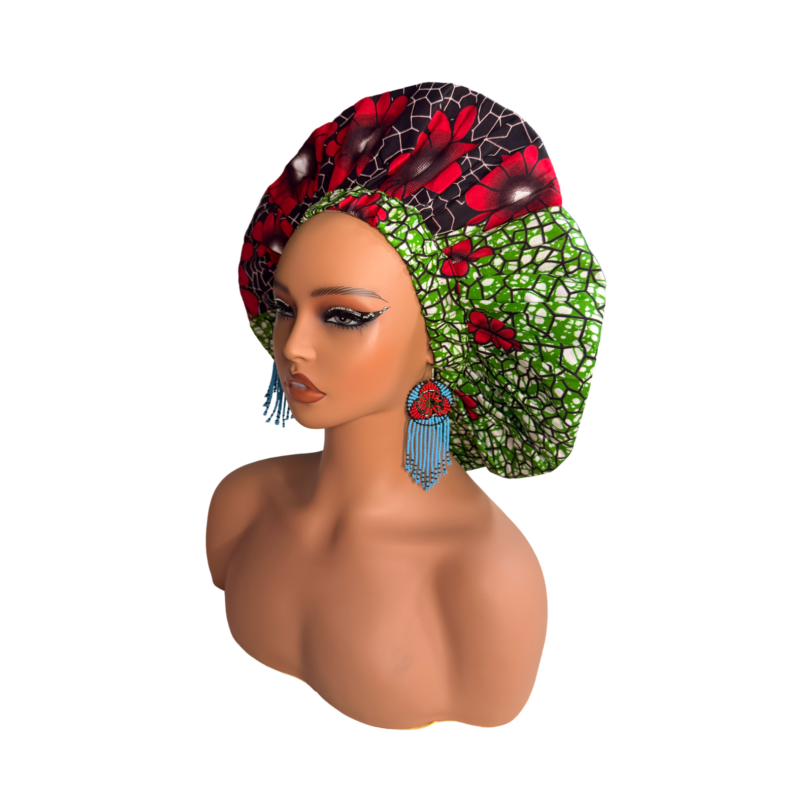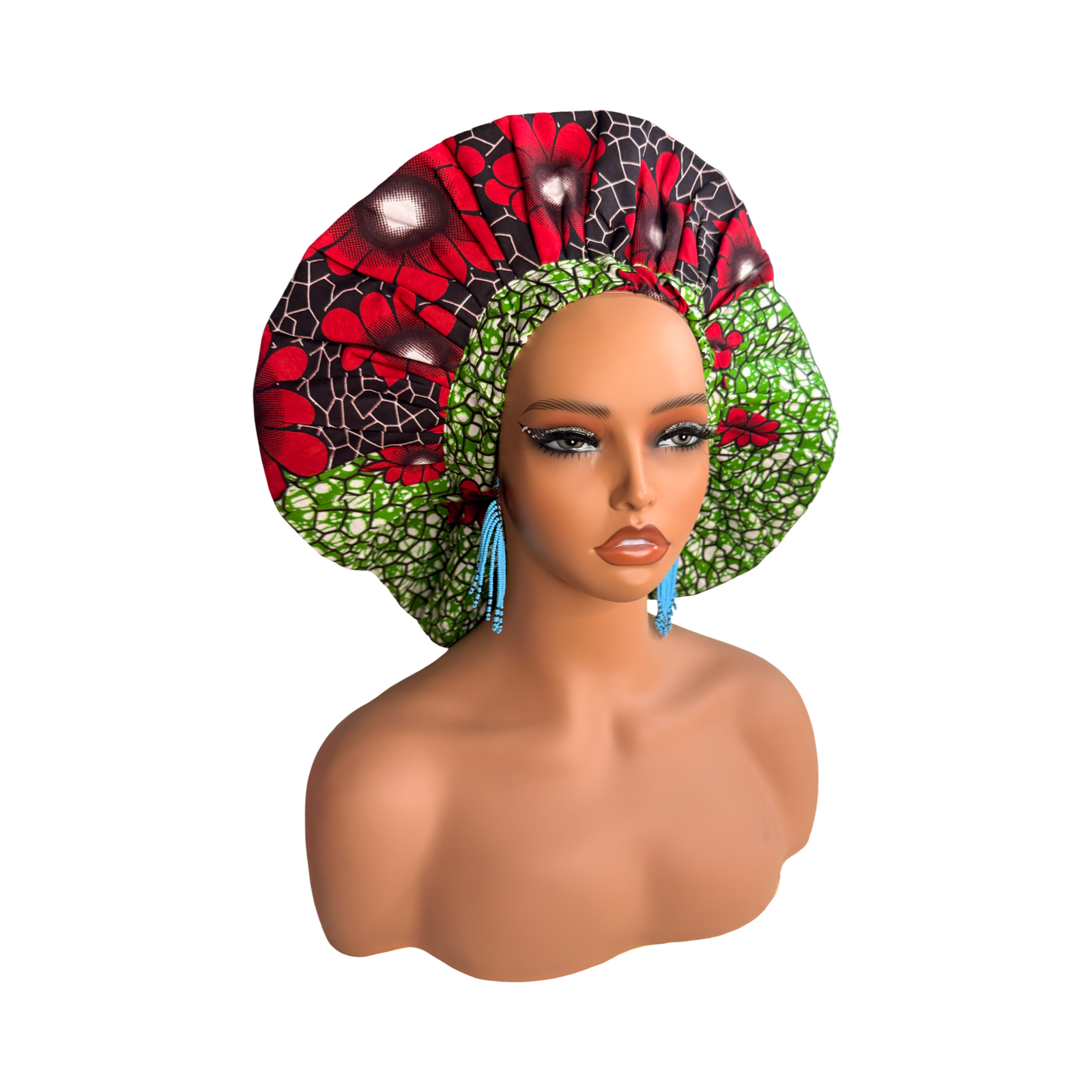 The Amina Night Bonnet blends comfort, elegance, and daily hair care. It feels soft the moment you put it on. With smooth silk inside and Ankara accents outside, it turns night care into something beautiful.
