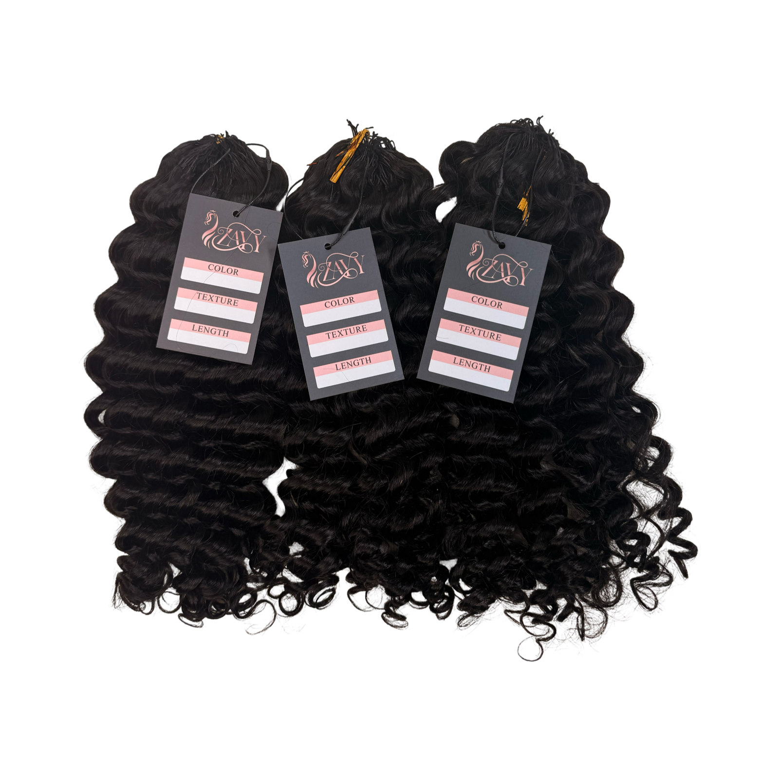 100 grams of 100% premium human hair per bundle. Available in either 80 strands or 100 strands, depending on curl pattern.